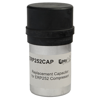 Replacement starting capacitor for the discontinued EasyPro ERP252 230V rocking piston compressor. Limited stock.